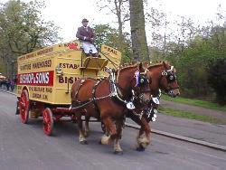 The Suffolk Horse is always chesnut in colour (note the traditional spelling without the 't'), often accompanied with a star on the forehead, or a thin reach, blaze or shim down the face. No other colour is seen. There are seven recognised shades of chesnut: dark approaching brown-black, liver colour or mahogany chesnut, dull dark chesnut, light mealy chesnut, red, golden, lemon, bright chesnut. Although non standard, the preferred heights are between 16.1hh and 16.2hh for a mare, and 17hh to 17.1hh for a stallion. A mature horse can weigh between three quarters and a full tonne. The Suffolk is shaped with great width in front and in the quarters. Its short legs and resulting low draught give it a direct pull on its vehicle. The impression is that the body is too big for the legs, giving the breed the nickname 'Suffolk Punch'. The Suffolk shares a distinctness with the British Percheron of being the only clean-legged draught horse. The breed is famous for its docile disposition and young horses can be quickly schooled to perform any work. Early maturity means that many Suffolks are put to light work at two years of age and go into full work at three, working well into their mid-twenties. Easy keeping qualities are characteristic. Considering the weight and work performed, food consumption is small. The Suffolk can live on an allowance that would have starved the enormous dray horses of Liverpool and London, lasting for long hours without feeding as was practiced on farms. The breed was predominantly used for agricultural work. According to Camden's 'Britannia', the Suffolk Horse dates back to 1506, originating in Suffolk and the neighbouring counties in East Anglia. This makes the Suffolk the oldest breed of heavy horse in Britain to exist in its present state. Every Suffolk Horse in existence today traces its descent in the direct male line, in an unbroken chain, to a horse foaled in 1768, Thomas Crisp's horse of Ufford. At the time, all the other male lines appear to have died out. This subsequently occurred again at the beginning of the 19th century and in 1940. During the peak of its popularity, East Anglia was isolated from the rest of Britain, and so the breed did not leave its homeland until the 1930s, by which time it was too late.